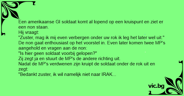 "Bedankt zuster, ik wil namelijk niet naar IRAK toe."