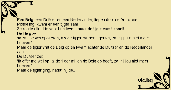 Een Belg, een Duitser en een Nederlander, liepen door de Amazone.