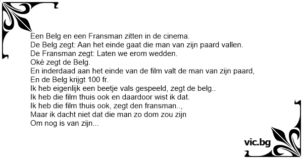 Een Belg en een Fransman zitten in de cinema.