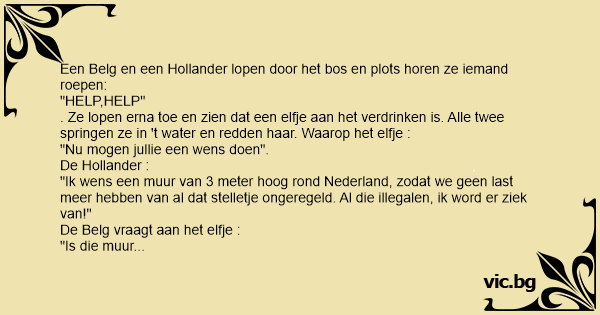 Een Belg en een Hollander lopen door het bos en plots horen ze iemand roepen: