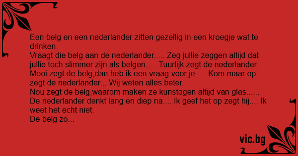 Mooi zegt de belg,dan heb ik een vraag voor je..... Kom maar op zegt de nederlander... Wij weten alles beter.