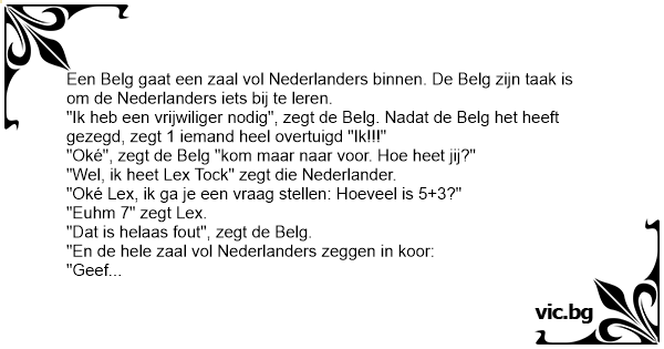 "Oké", zegt de Belg "kom maar naar voor. Ное heet jij?"