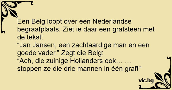 Een Belg loopt over een Nederlandse begraafplaats. Ziet ie daar een grafsteen met de tekst:
