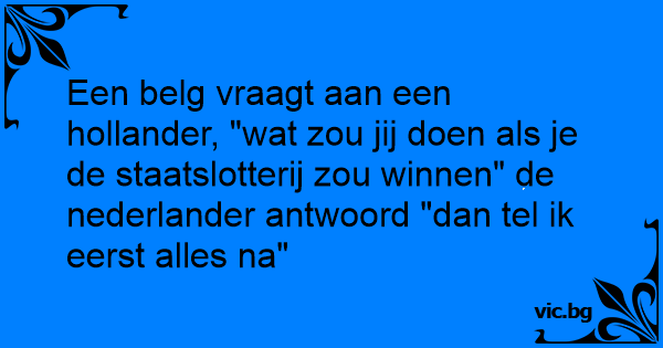 Een belg vraagt aan een hollander, "wat zou jij doen als je de staatslotterij zou winnen" de nederlander antwoord "dan tel ik eerst alles na"