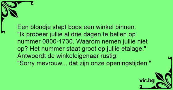 "Ik probeer jullie al drie dagen te bellen op nummer 0800-1730. Waarom nemen jullie niet op? Het nummer staat groot op jullie etalage."