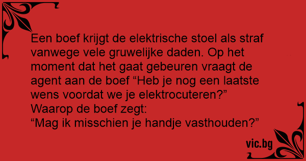 Den dödsdömde hade tagit plats i elektriska stolen. - Har du någon sista önskan? frågade prästen. - Ja, håll mig i handen.