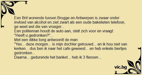 Een Brit wonende tussen Brugge en Antwerpen is zwaar onder invloed van alcohol en ziet zwart als een oude bakelieten telefoon, ge weet wel die van vroeger...