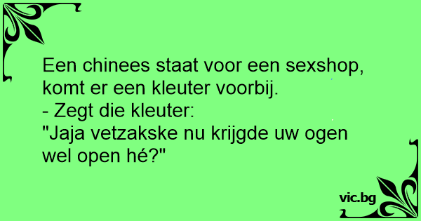 Een chinees staat voor een sexshop, komt er een kleuter voorbij.