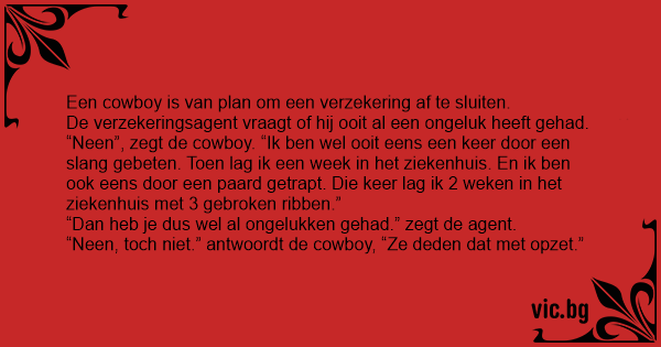 “Neen, toch niet.” antwoordt de cowboy, “Ze deden dat met opzet.”