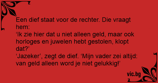 ‘Jazeker’, zegt de dief. ‘Mijn vader zei altijd: van geld alleen word je niet gelukkig!’