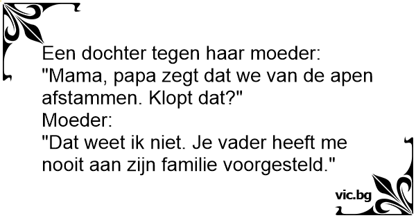 Op een dag vraagt een meisje aan haar mama: “Mama, waar komen de mensen eigenlijk vandaan?””Nou,” antwoordt haar mama, “God heeft de eerste mensen, Adam en Eva, op de wereld gezet. Adam en Eva...