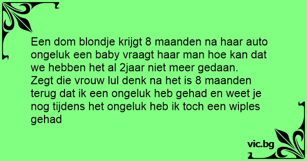 Een dom blondje krijgt 8 maanden na haar auto ongeluk een baby vraagt haar man hое kan dat we hebben het al 2jaar niet meer gedaan.