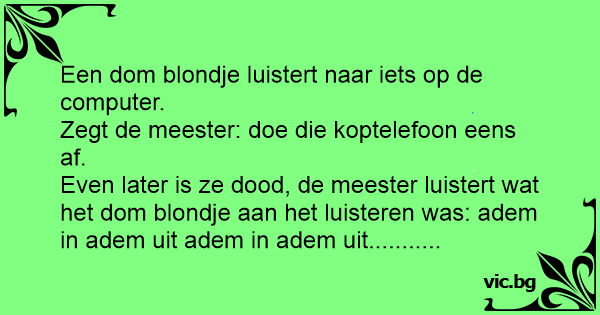Even later is ze dood, de meester luistert wat het dom blondje aan het luisteren was: adem in adem uit adem in adem uit...........