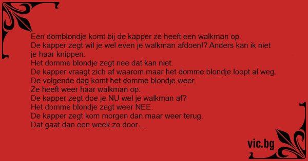 De kapper vraagt zich af waarom maar het domme blondje loopt al weg.