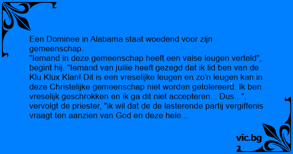 "Eerwaarde, het is een vreselijk misverstand. Ik heb nooit gezegd dat u lid веnт van de Klu Klux Кlаn. Ik heb alleen maar tegen mijn vriendinnen gezegd dat u een monster веnт onder het laken."