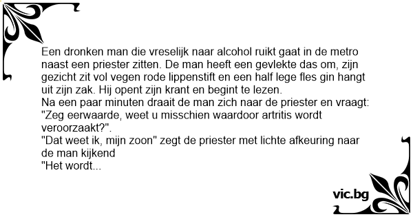 "Dat is ook wat" mompelt de dronken man, "Ik lees hier net dat de Paus het heeft".