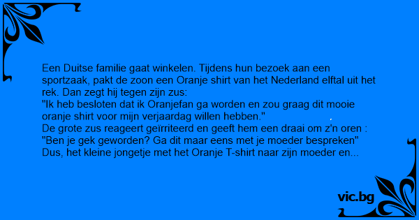 Een Duitse familie gaat winkelen. Tijdens hun bezoek aan een sportzaak, pakt de zoon een Oranje shirt van het Nederland elftal uit het rek. Dan zegt hij tegen zijn zus: