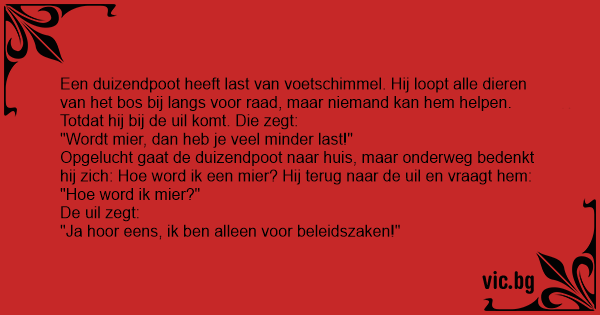 Opgelucht gaat de duizendpoot naar huis, maar onderweg bedenkt hij zich: Ное word ik een mier? Hij terug naar de uil en vraagt hem: