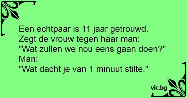 Een echtpaar is 11 jaar getrouwd. Zegt de vrouw tegen haar man: