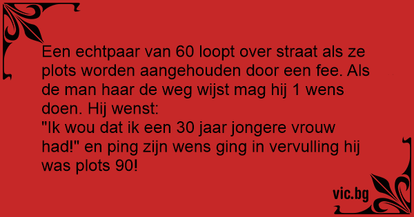 "Ik wou dat ik een 30 jaar jongere vrouw had!" en ping zijn wens ging in vervulling hij was plots 90!