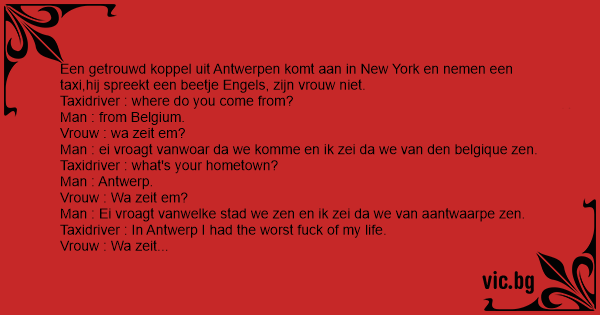 Een getrouwd koppel uit Antwerpen komt aan in New York en nemen een taxi,hij spreekt een beetje Engels, zijn vrouw niet.