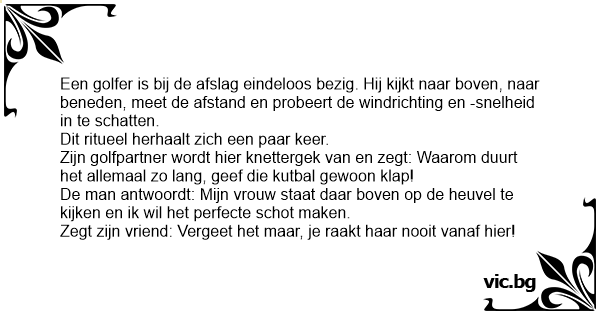 Zijn golfpartner wordt hier knettergek van en zegt: Waarom duurt het allemaal zo lang, geef die kutbal gewoon klap!