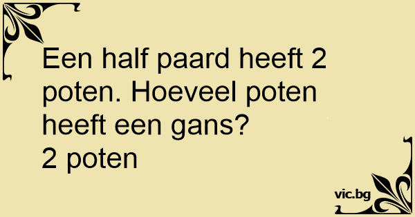 Een half paard heeft 2 poten. Hoeveel poten heeft een gans?