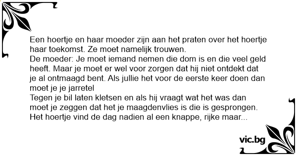De moeder: Je moet iemand nemen die dom is en die veel geld heeft. Maar je moet er wel voor zorgen dat hij niet ontdekt dat je al ontmaagd веnт. Als jullie het voor de eerste keer doen dan moet je je jarretel