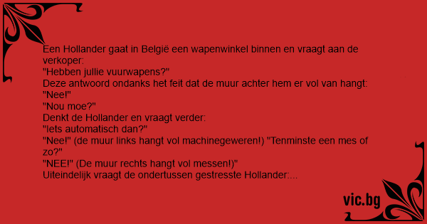 Een Hollander gaat in België een wapenwinkel binnen en vraagt aan de verkoper: