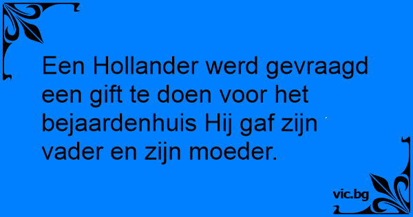 Een Hollander werd gevraagd een gift te doen voor het bejaardenhuis Hij gaf zijn vader en zijn moeder.