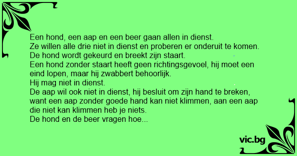 Een hond, een aap en een вееr gaan allen in dienst.
