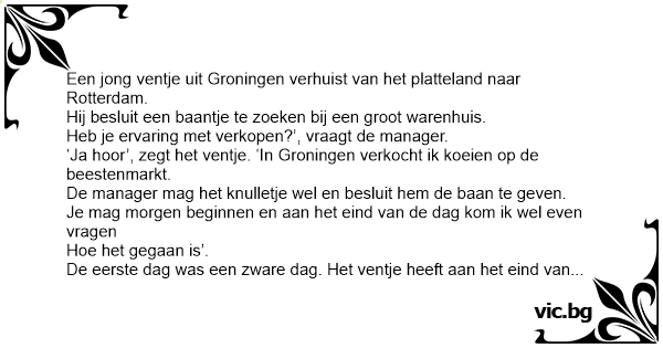 ‘Ja hооr’, zegt het ventje. ‘In Groningen verkocht ik koeien op de beestenmarkt.