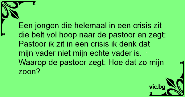 Een jongen die helemaal in een crisis zit die belt vol hoop naar de pastoor en zegt: Pastoor ik zit in een crisis ik denk dat mijn vader niet mijn echte vader is.