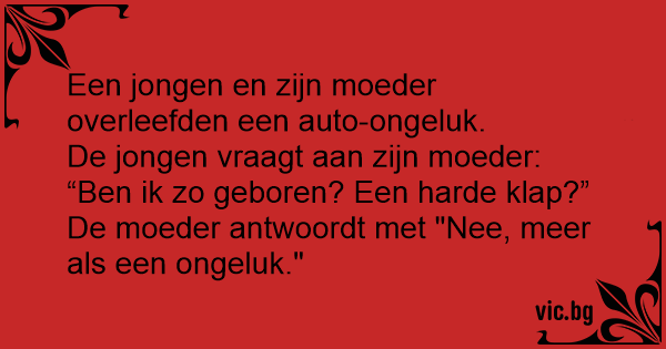 De moeder antwoordt met "Nee, meer als een ongeluk."
