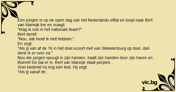 Een jongen is op de open dag van het Nederlands elftal en loopt naar Bert van Marwijk toe en vraagt: