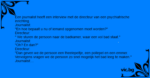 Een journalist heeft een interview met de directeur van een psychiatrische inrichting.