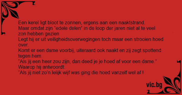 Komt er een dame voorbij, uiteraard ook naakt en zij zegt spottend tegen hem.