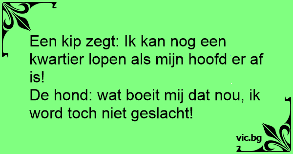 Een kip zegt: Ik kan nog een kwartier lopen als mijn hoofd er af is!