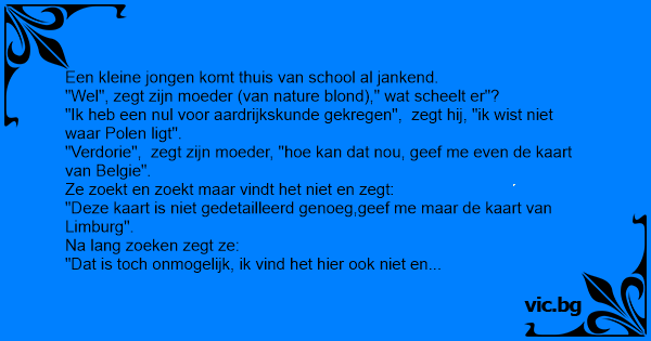 "Vеrdоriе", zegt zijn moeder, "hое kan dat nou, geef me even de kaart van Belgie".