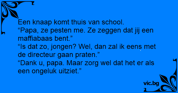 “Papa, ze pesten me. Ze zeggen dat jij een maffiabaas веnт.”