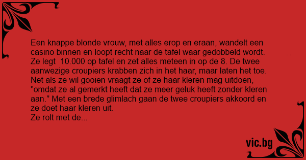 Een knap blondje loopt een casino binnen in Vegas. Ze gaat naar een van de roulettetafels en zegt tegen de twee mannen die er staan: "Ik zou graag alles of niets spelen. 20.000 $ voor één worp." De...