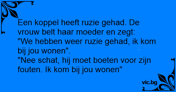 Een koppel heeft ruzie gehad. De vrouw belt haar moeder en zegt: