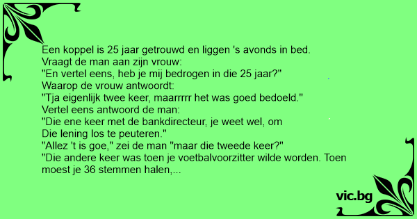"Allez 't is goe," zei de man "maar die tweede keer?"