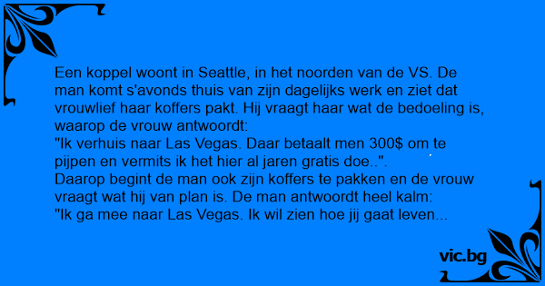 "Ik verhuis naar Las Vegas. Daar betaalt men 300$ om te pijpen en vermits ik het hier al jaren gratis doe..".