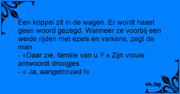 - «Daar zie, familie van u ? » Zijn vrouw antwoordt droogjes :
