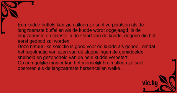 Een kudde buffels kan zich alleen zo snel verplaatsen als de langzaamste buffel en als de kudde wordt opgejaagd, is de langzaamste en slapste in de staart van de kudde, degene die het eerst gedood zal worden.