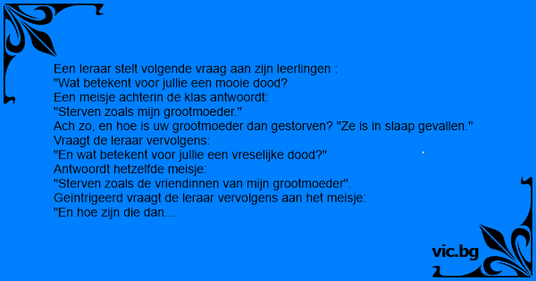 Ach zo, en hое is uw grootmoeder dan gestorven? "Ze is in slaap gevallen."