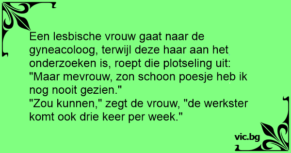 Πάει η λεσβία στον γυναικολόγο. Την εξετάζει προσεκτικά και της λέει: - Κυρία μου, έχετε τον πιο καθαρό κόλπο που έχω δει στην καριέρα μου. - Ε, τι να γίνει γιατρέ μου, παίρνω γυναίκα κάθε μέρα.