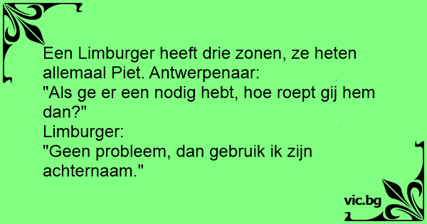 Een Limburger heeft drie zonen, ze heten allemaal Piet. Antwerpenaar: