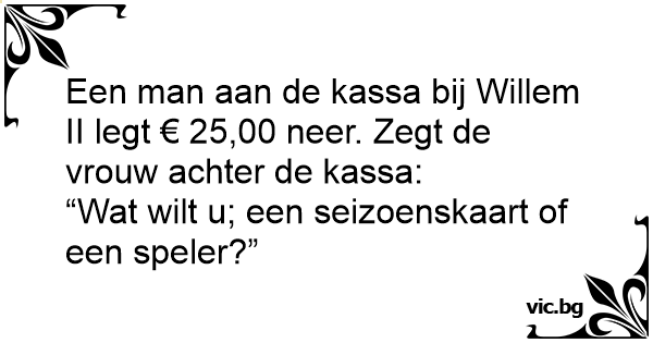 Een man aan de kassa bij Willem II legt € 25,00 neer. Zegt de vrouw achter de kassa: